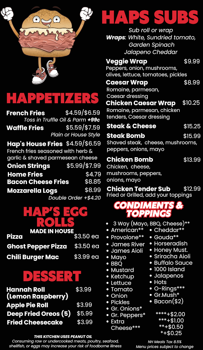 Welcome to Haps Portsmouth, a beloved gem on Lafayette Road, where the aroma of expertly crafted dishes ignites the senses. Known for its roast beef sandwiches, Haps delivers consistent quality that keeps locals coming back. A highlight is the 4-way beef, praised for its rich flavor and generous portioning. The Super Beef 3-way also garners rave reviews, boasting a perfect balance of sauce and griddle-toasted buns that define a stellar sandwich experience.